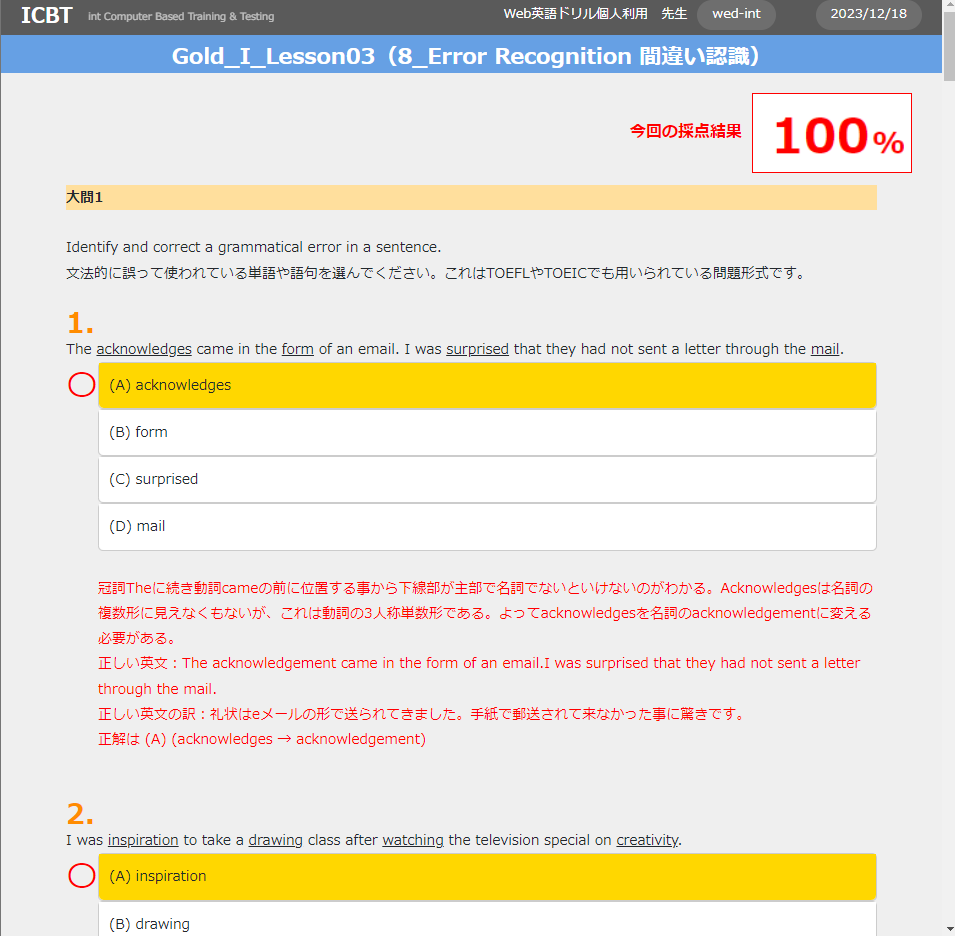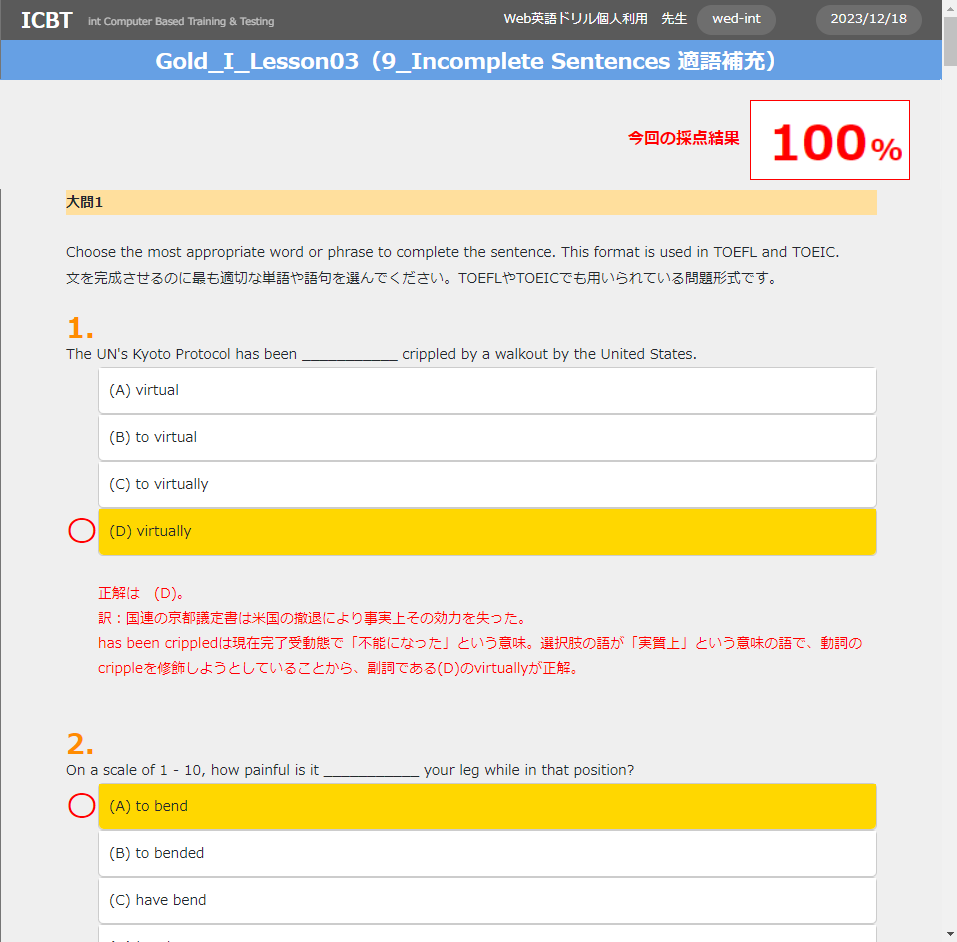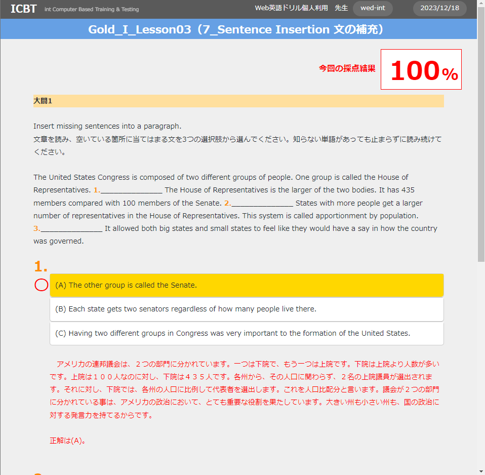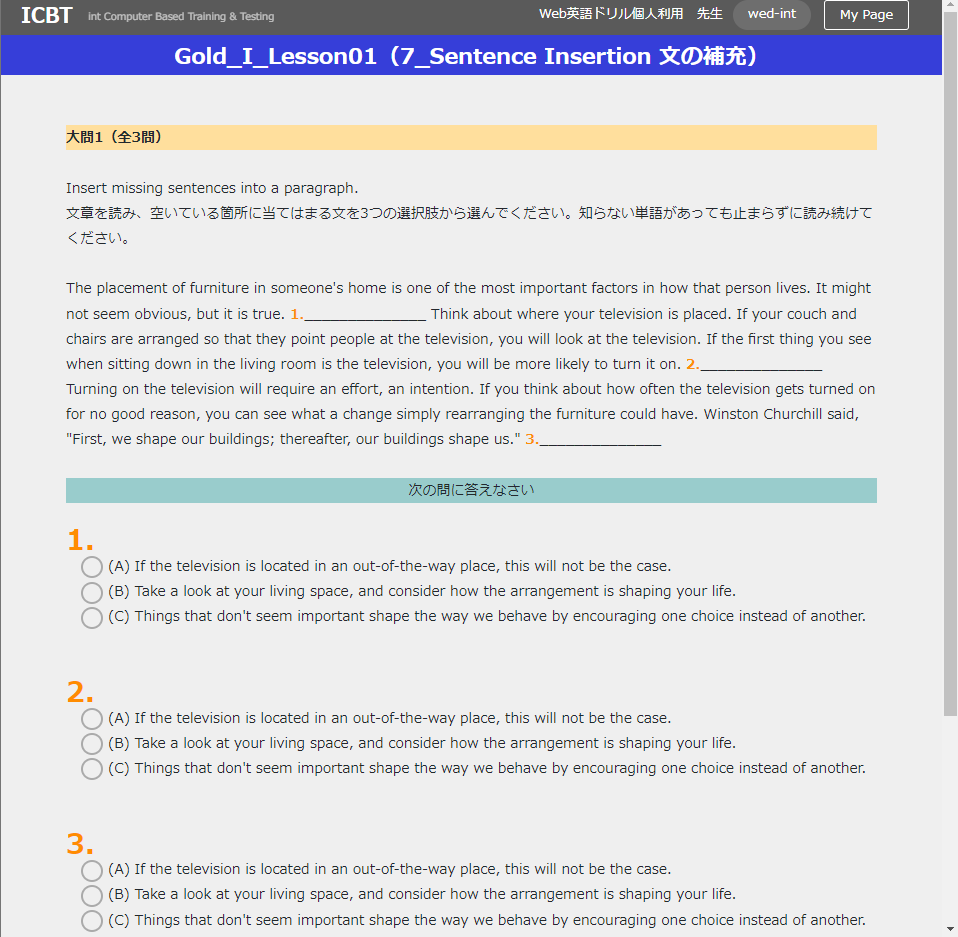 これはTOEFLやTOEICでも用いられている問題形式です。