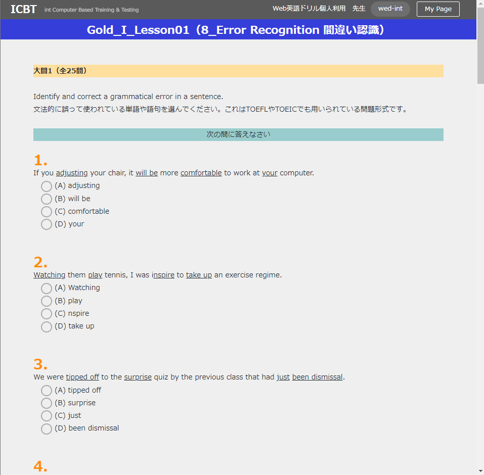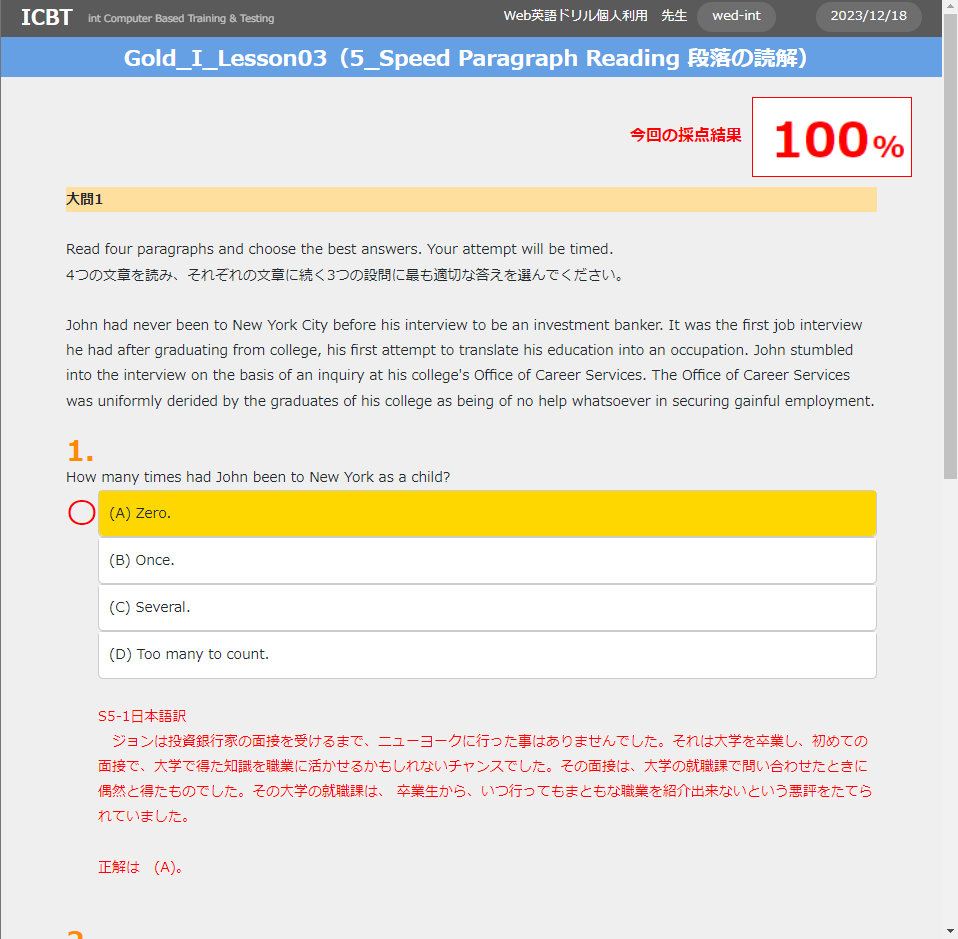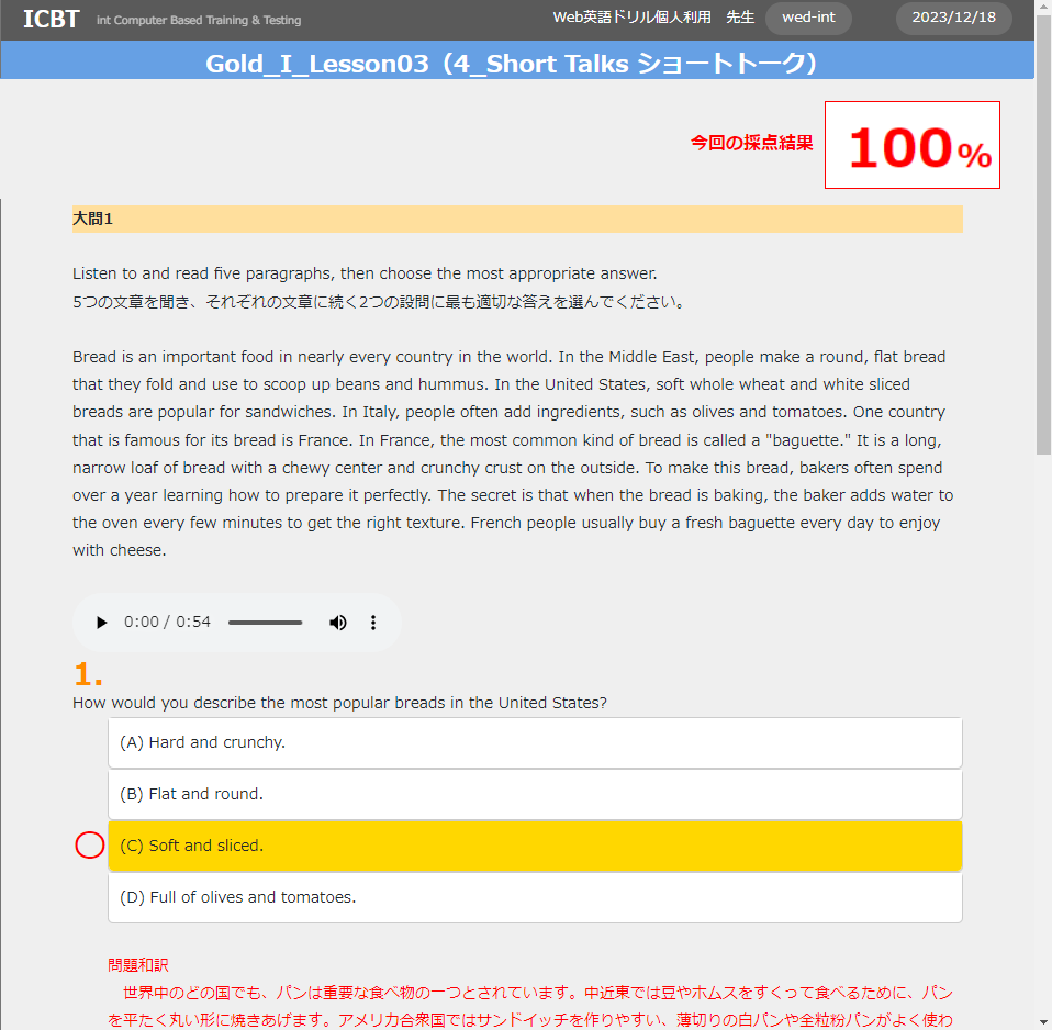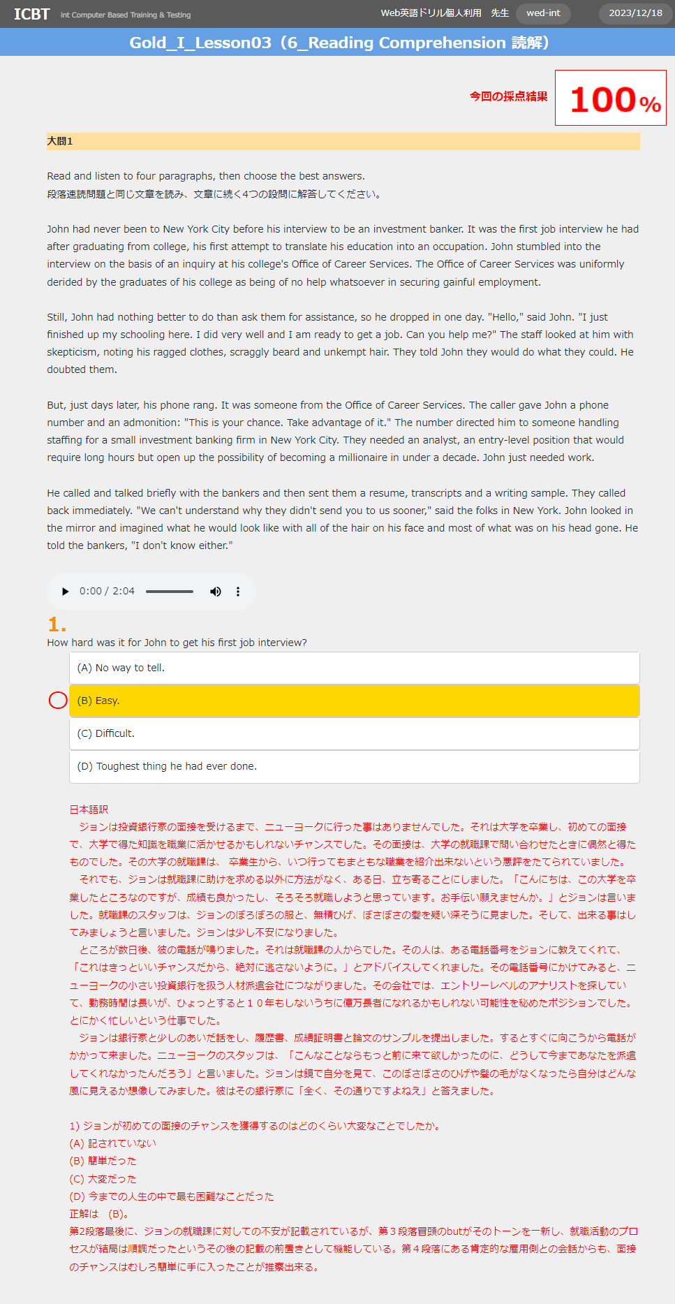 ③質問文を読んで、4つの英文から正しいものを選択します。