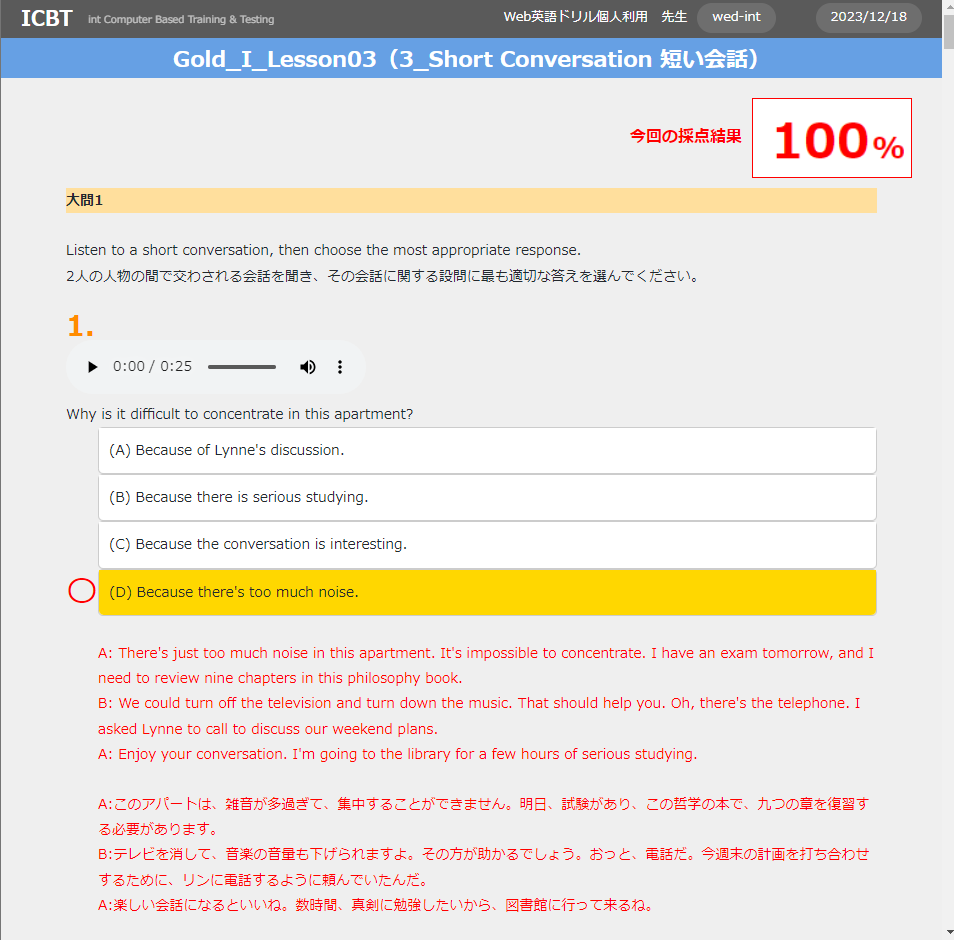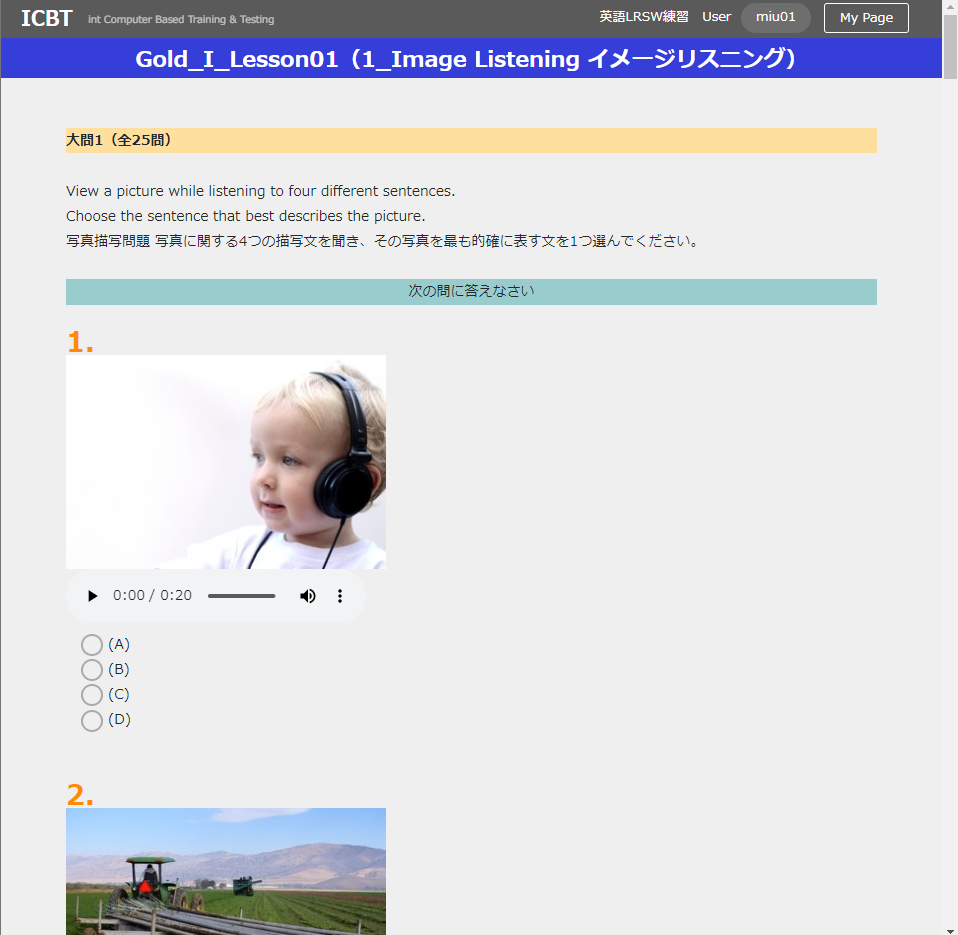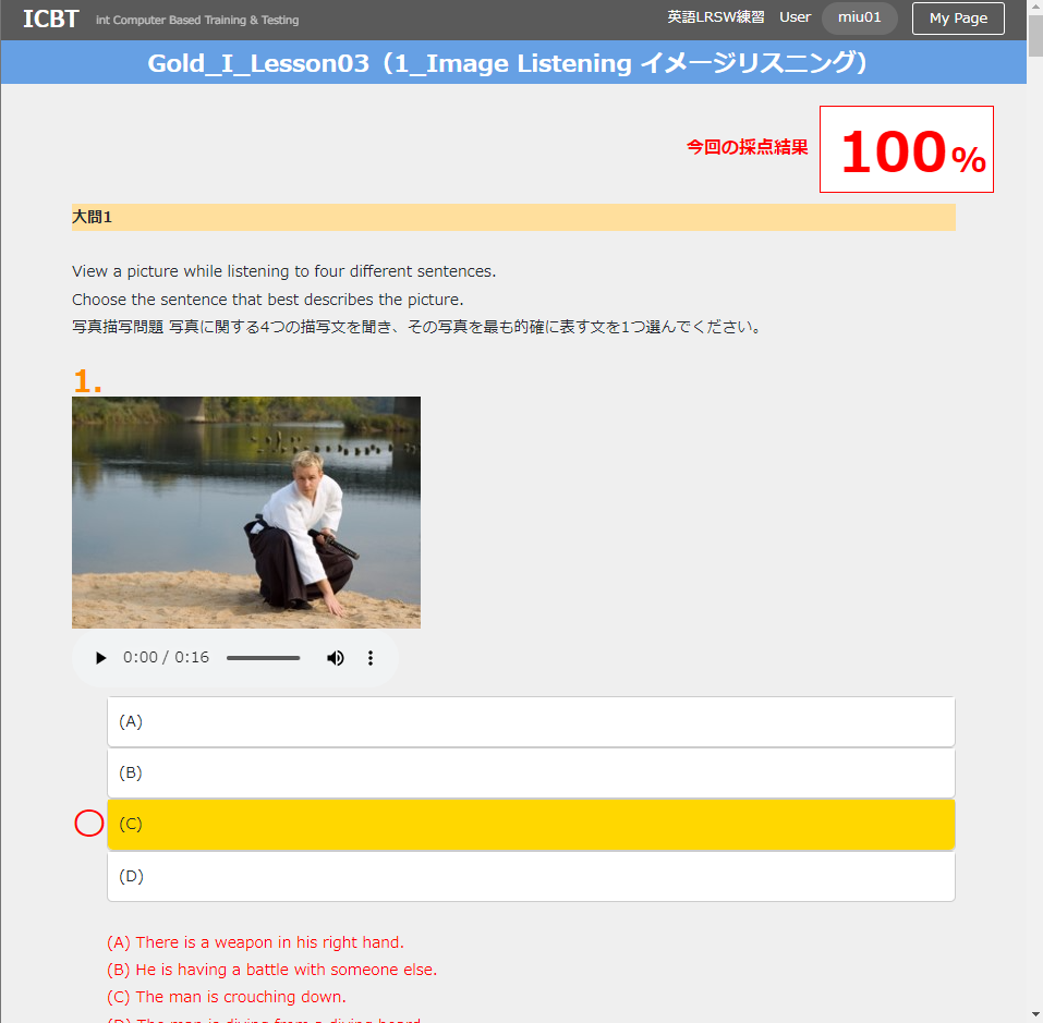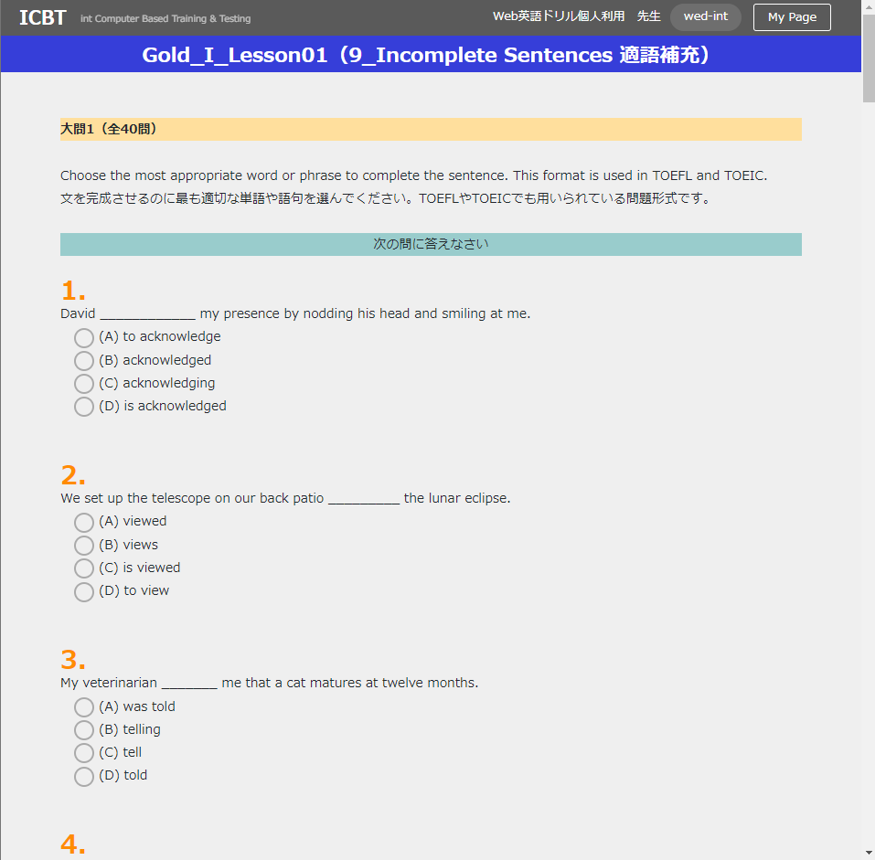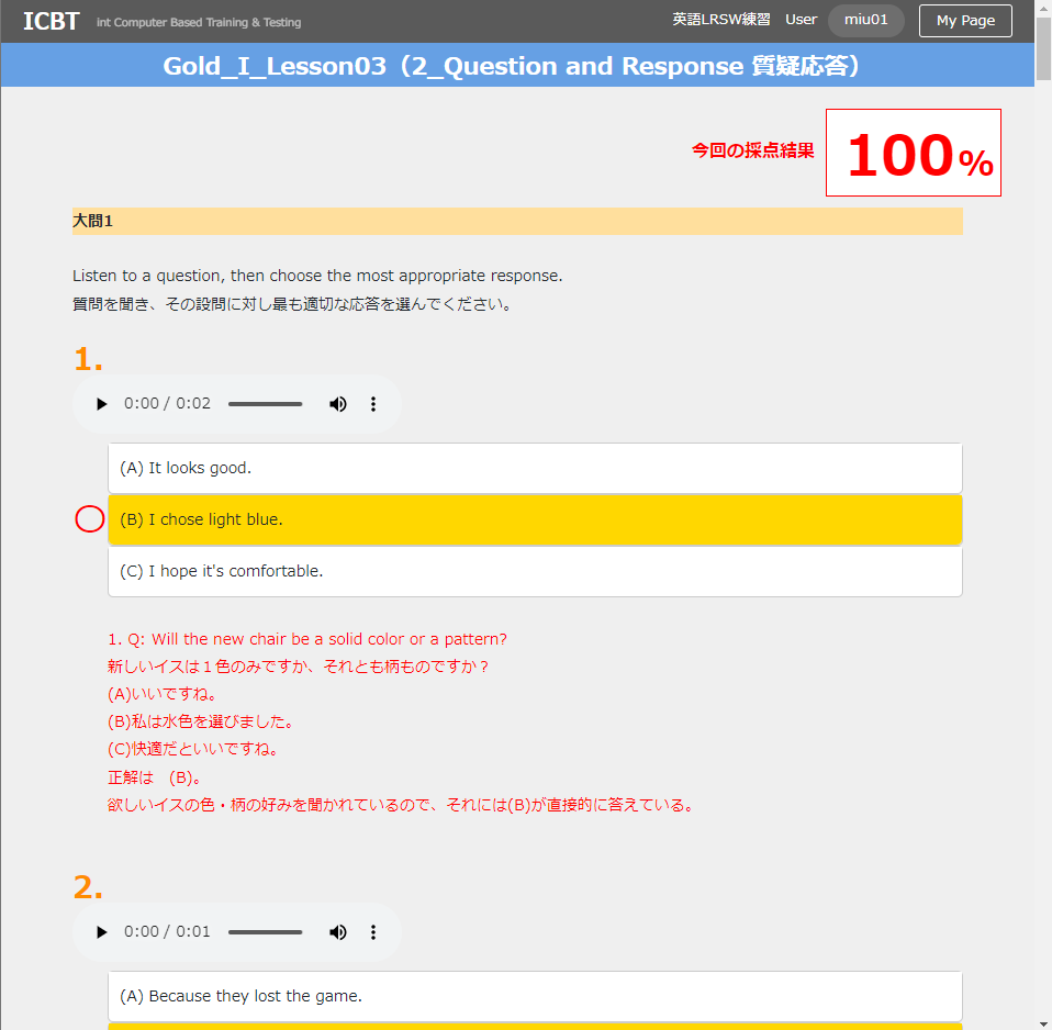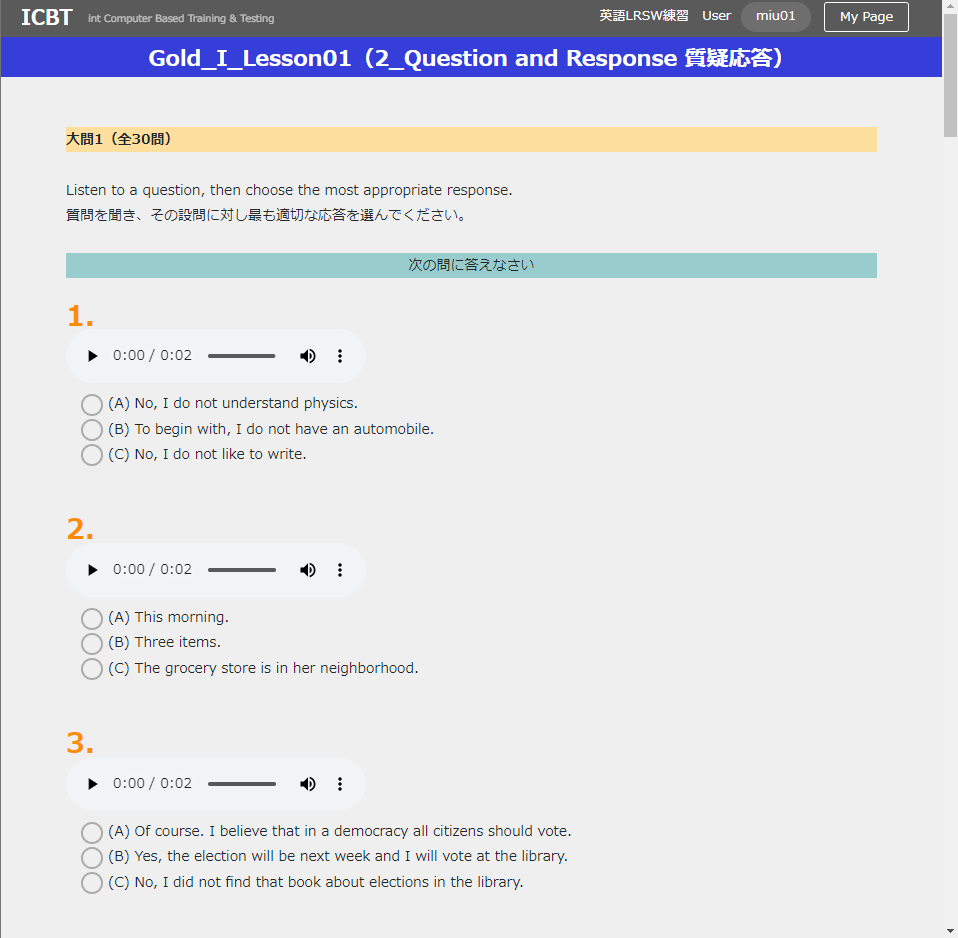 ③3つ(または4つ)の応答文から正しいものを選択します。