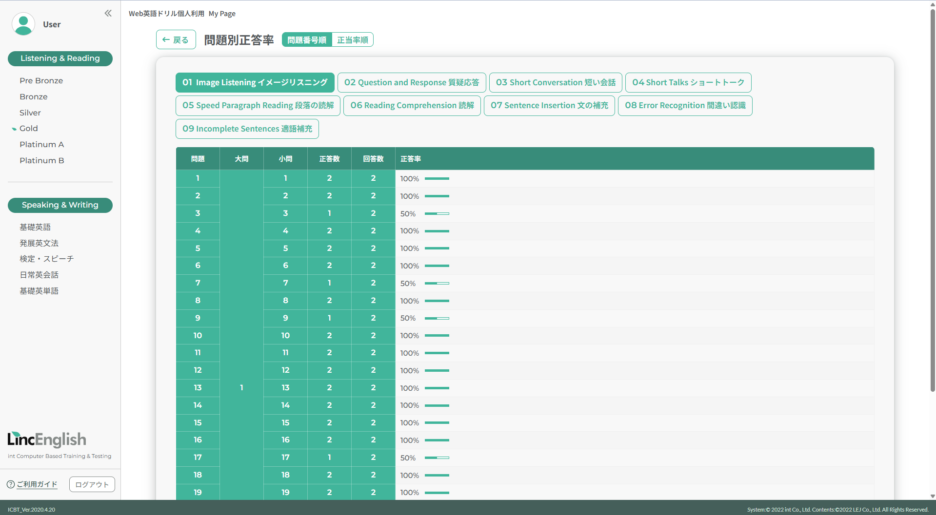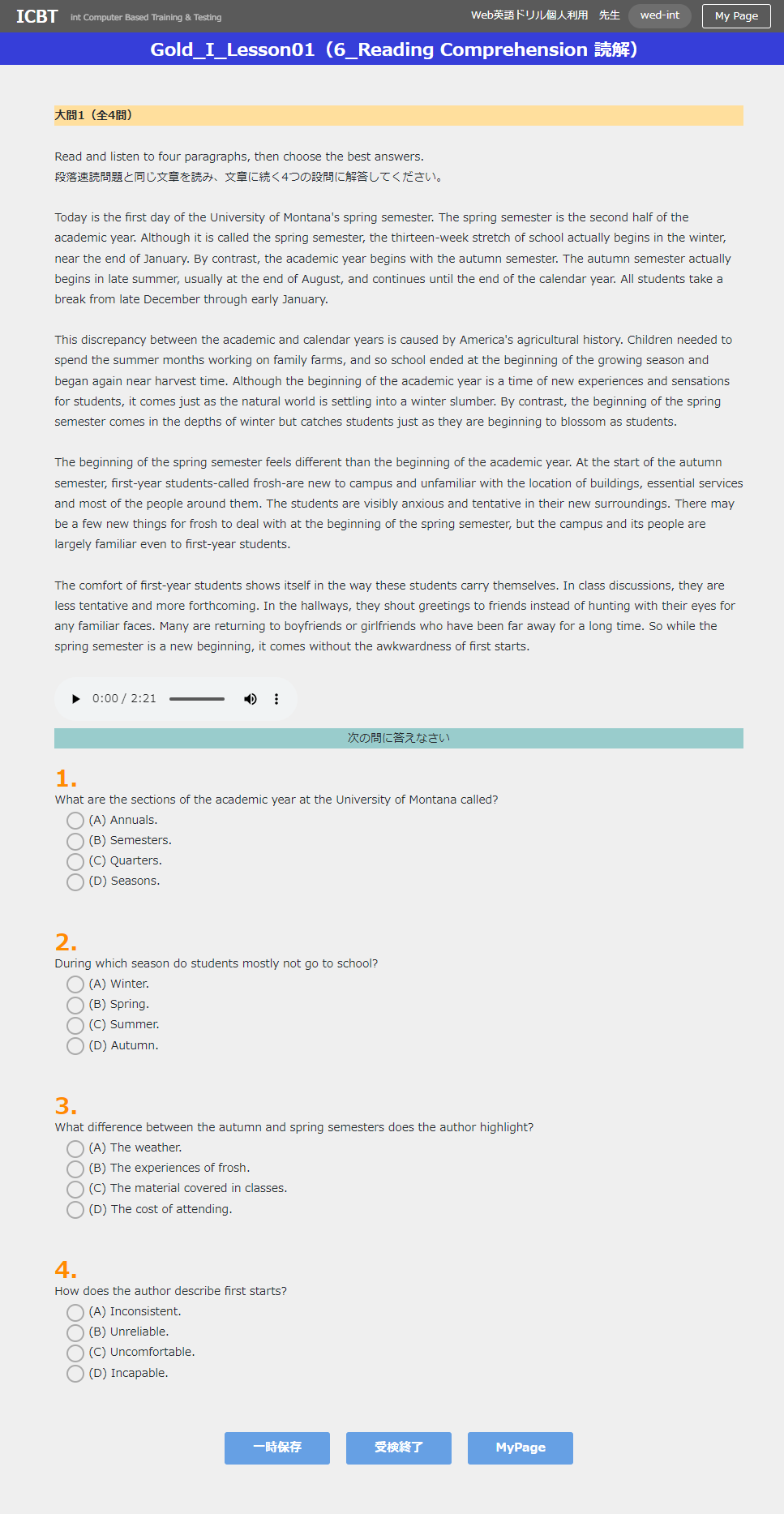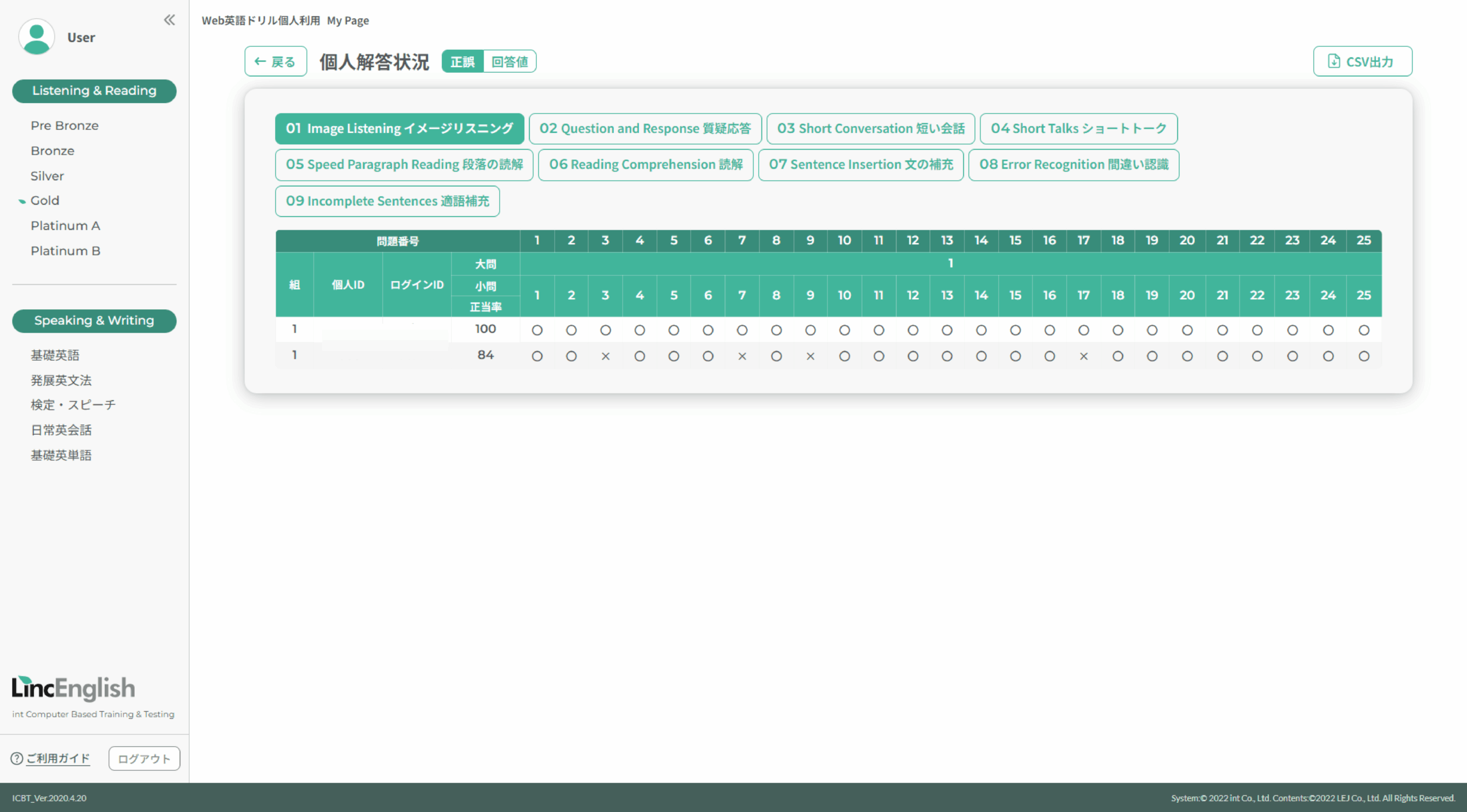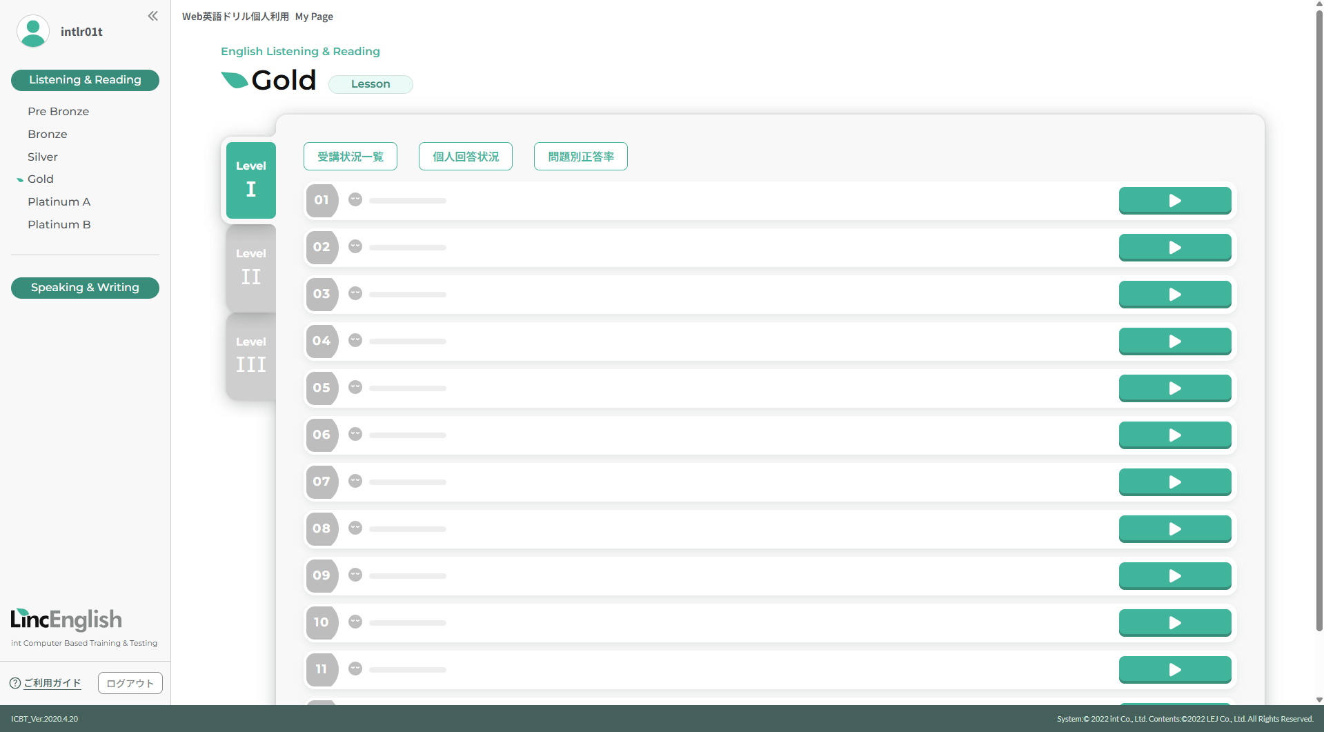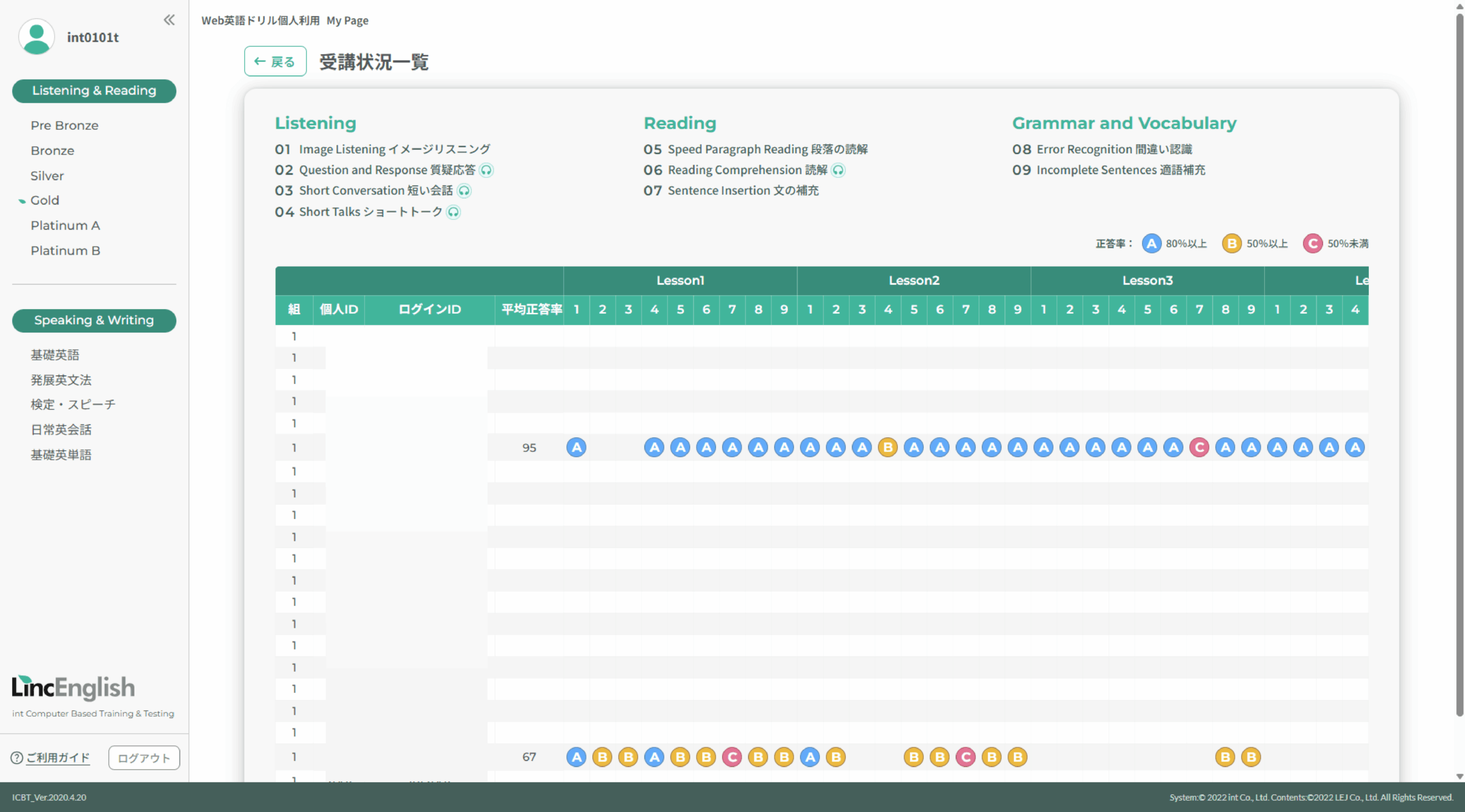 LincEnglishで提供するListening & Readingには、Listening、Reading、管理者・教師向けの受講者管理機能があります。