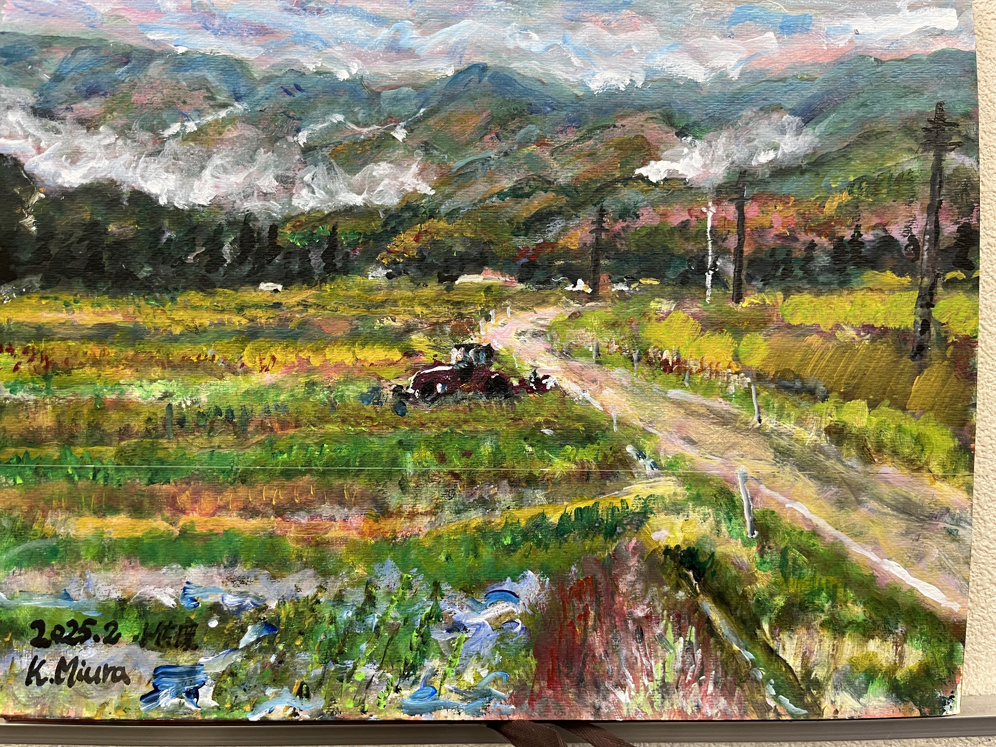 何も描くことがないので、ゴッホの「収穫」を模写。