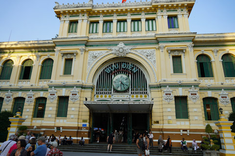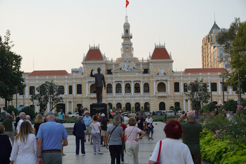 ホーチミン人民委員会庁舎 1902年から1908年にかけて、当時のサイゴン市庁舎として使われていた。1975年以降、ホーチミン人民委員会庁舎と呼ばれる。建物の前に右手をあげて立つ像は国父ホーチミン。 優雅なコロニアル建築として観光客に人気があるという。 1887年から1954年にかけてフランス領インドシナだった。 |
