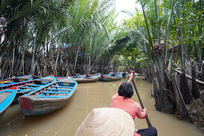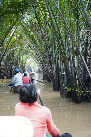 水路の水の色がなんとも言えない。ゴミも混じっている。せっかくのベトナムらしい素晴らしい景観なのに残念。まだまだ開発途上国だ。 |