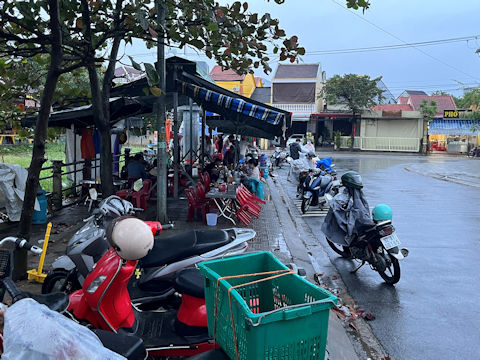 ![]() 雨の中でもベトナムの朝食は外食か。 |