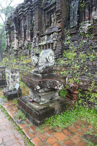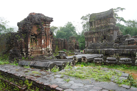 ミーソン遺跡ミーソン遺跡は、ホイアンから約40kmほど内陸に入った四方を山に囲まれた盆地にある。4世紀から13世紀までの間の王が宗教建造物の建設を行っていたとされる遺跡である。 |