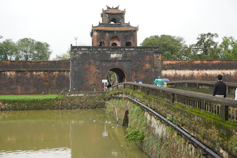 王宮に入る最初の門、雨に煙った古色がよい味を出していた。 |