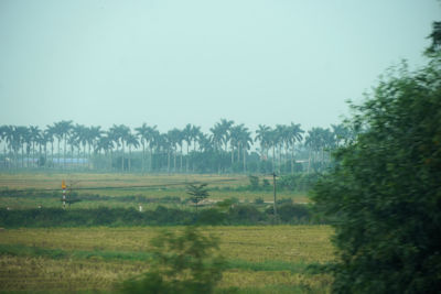 田園風景は、稲作文化の日本と同じような感じ。木々はヤシの木やバナナが多いのが印象的だった。