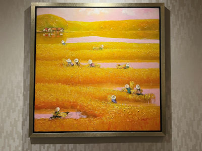 ![]() ホテルのレストランにあったベトナムの田園風景の絵。四季ごとに4枚あった。米作への深い愛が感じられる。 |